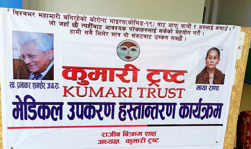 समाजसेवी राणाले आप्mना स्वर्गीय पिताको वार्षिक पुण्य तिथिको अवसरमा ट्रष्टमार्फत गर्न भएको उक्त आर्थिक स्रोतलाई उहाँसँग परामर्श गरी कर्णालीका अस्पताललाई पूर्वाधारयुक्त बनाउने निर्णय गरिएको पनि कुमारी ट्रष्टका अध्यक्ष समेत रहेका शाहले बताए ।