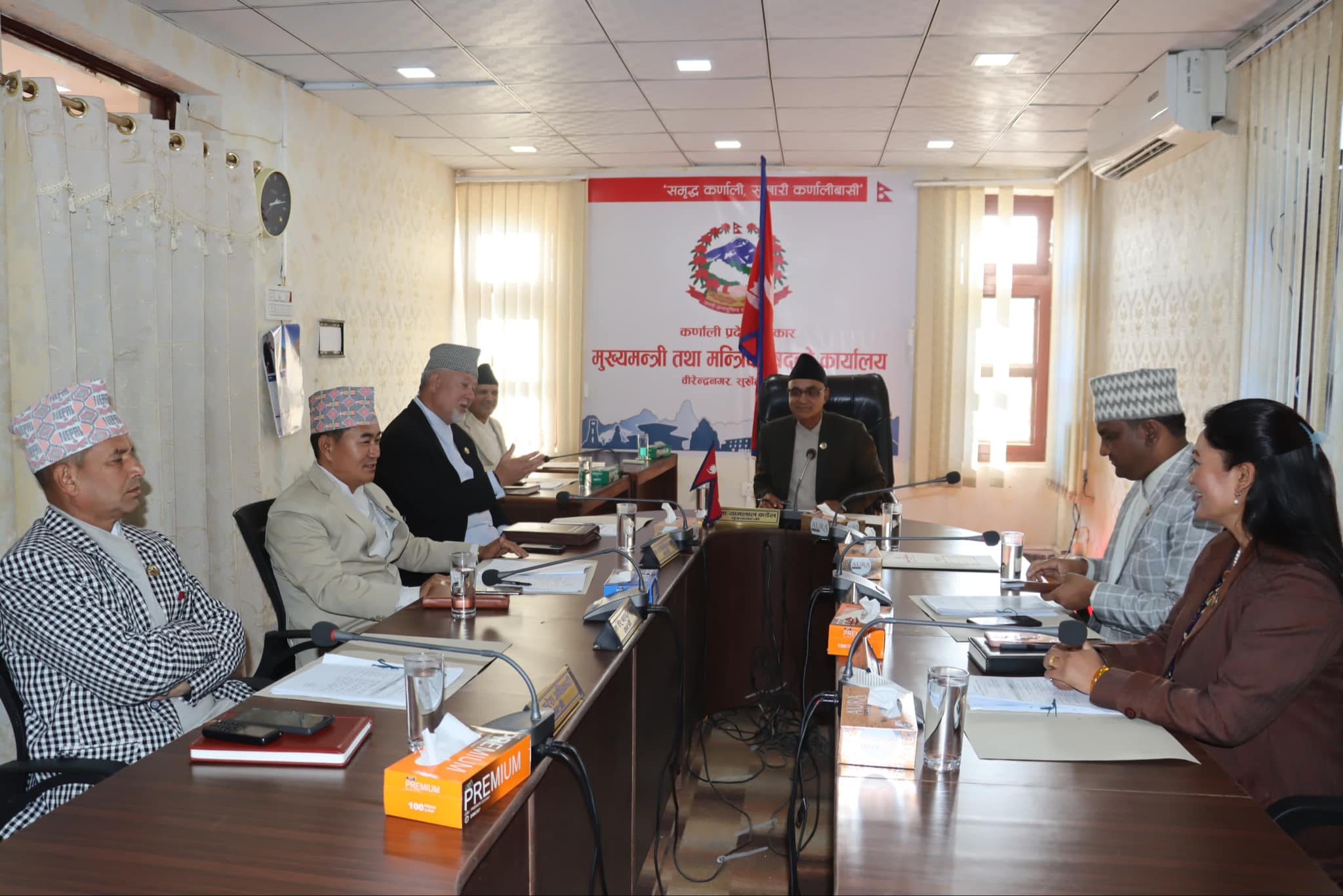 सुर्खेत । कर्णाली प्रदेश मन्त्रिपरिषद्को बैठकले मुख्यमन्त्री रोजगार कार्यक्रम बाँडफाँड गरी कार्यान्वयनका लागि स्थानीय तहमा अख्तियारी प्रदान गर्ने निर्णय गरेको छ ।