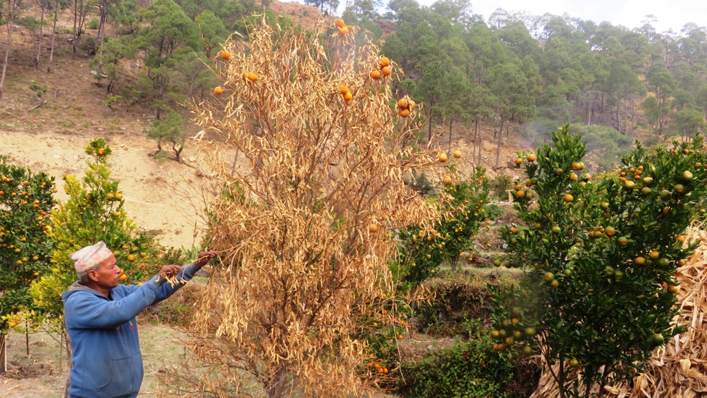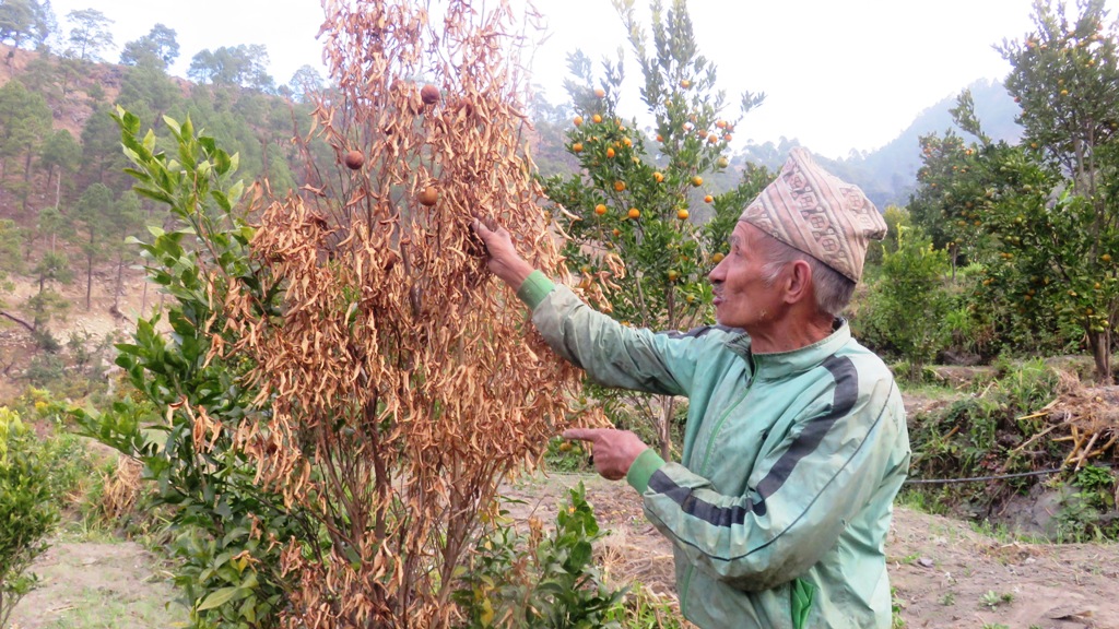 गत वर्ष ८ करोड वरावरको सुन्तला उत्पादन भएको जाजरकोटमा यस वर्ष सोको आधा पनि उत्पादन हुन नसकेको नलगाड ३ कृषक बिर्खबहादुर कामीले बताए । वारीमा लगाएका सुन्तलाका वोटहरु फल टिप्ने वेला सुक्न थालेपछि लगानी डुव्ने चिन्ताले छ, कामीले भने । गत वर्ष १ लाखको सुन्तला वेचेको र यस वर्ष ३० हजार पनि आम्दानी नहुने उनले बताए । वली र कामी जस्तै अर्का कृषक तिलकबहादुर पुन पनि सुन्तलाको वोटमा ढुसी लाग्ने रोगले सुन्तलाका दाना कालो हुने, डाँठ सुक्ने पात पहेँलो हुने र पछि पुरै वोट सुक्ने रोगका कारण आफुहरु ठुलो मर्कामा परेको पुनले बताए ।